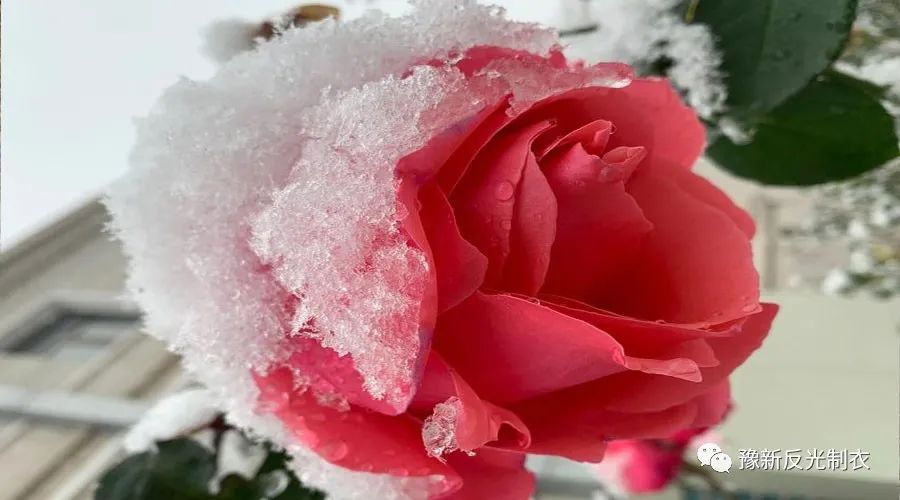 紅艷艷的花朵包裹了一層晶瑩剔透的外衣,心疼月季!這是要直接在枝頭上凍成永生花了!